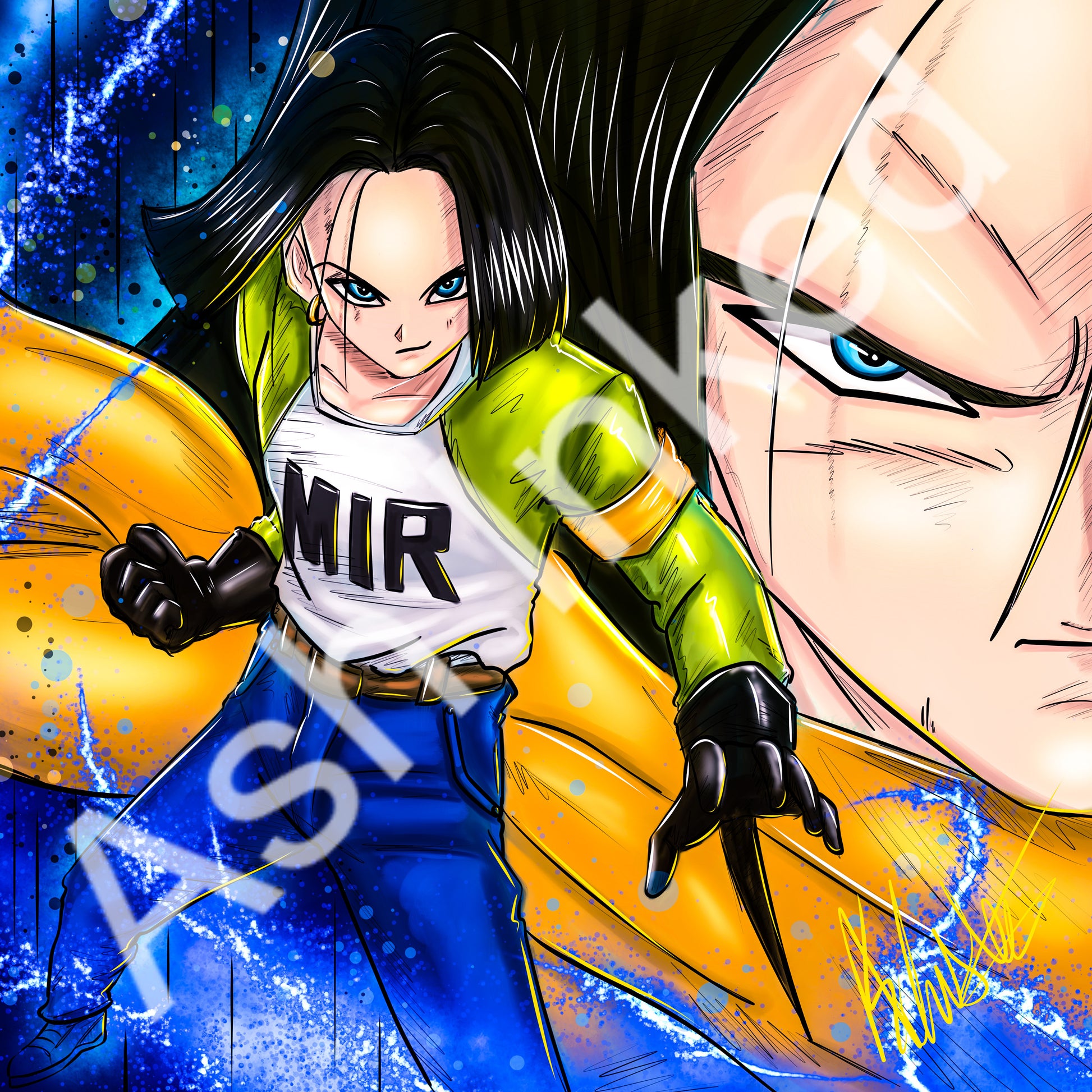 Android 17, once a villainous creation of Dr. Gero, now fights alongside the Z Fighters as a formidable protector of Earth with his unmatched combat skills and unwavering determination.