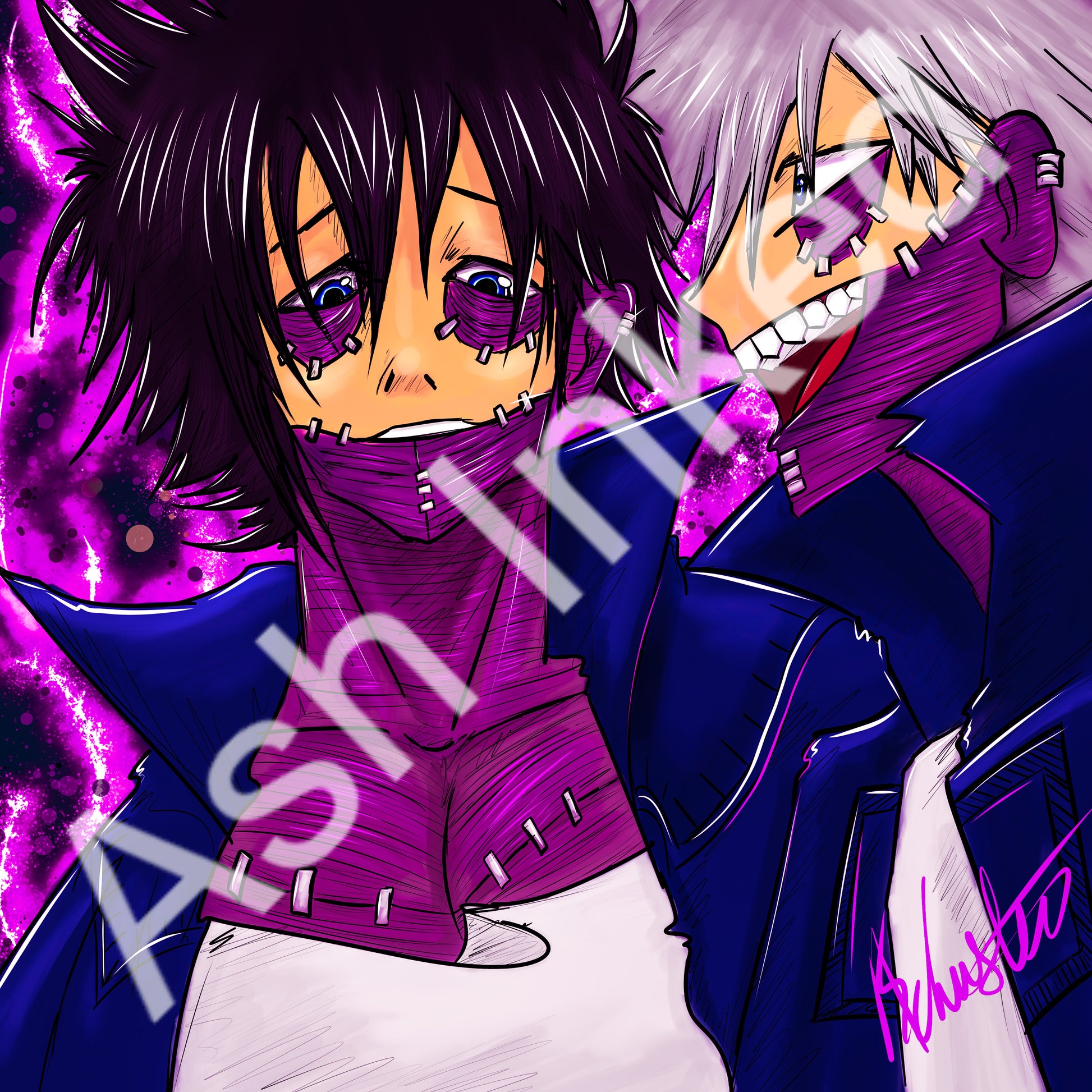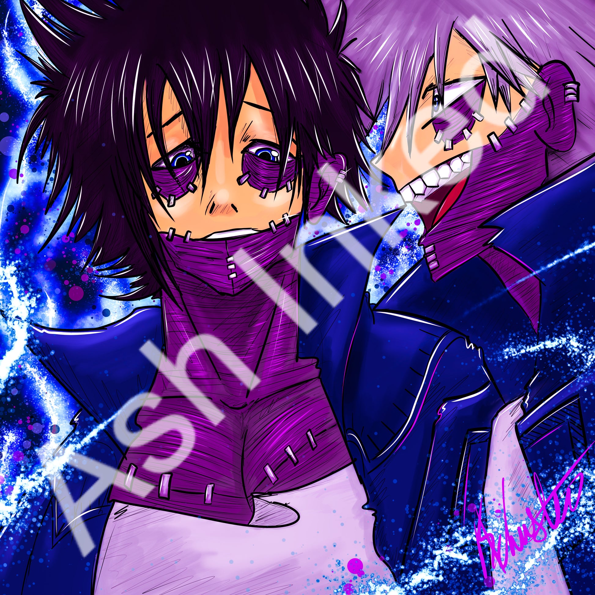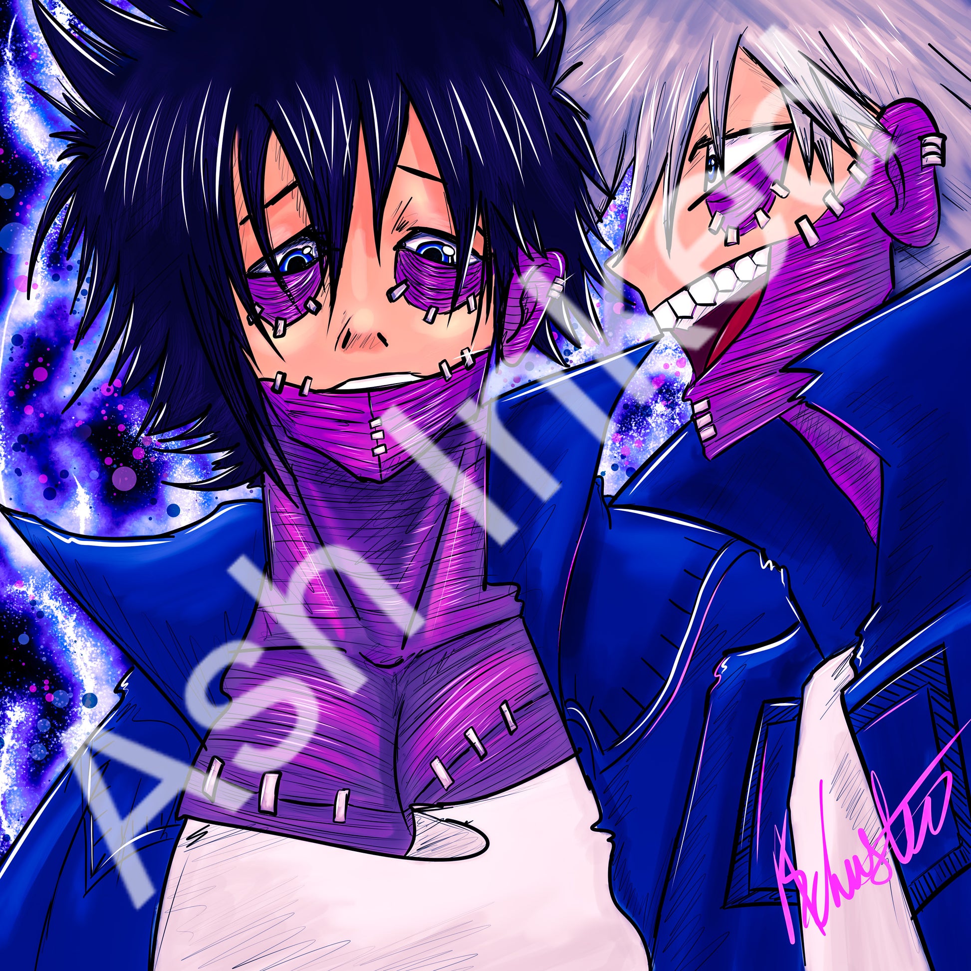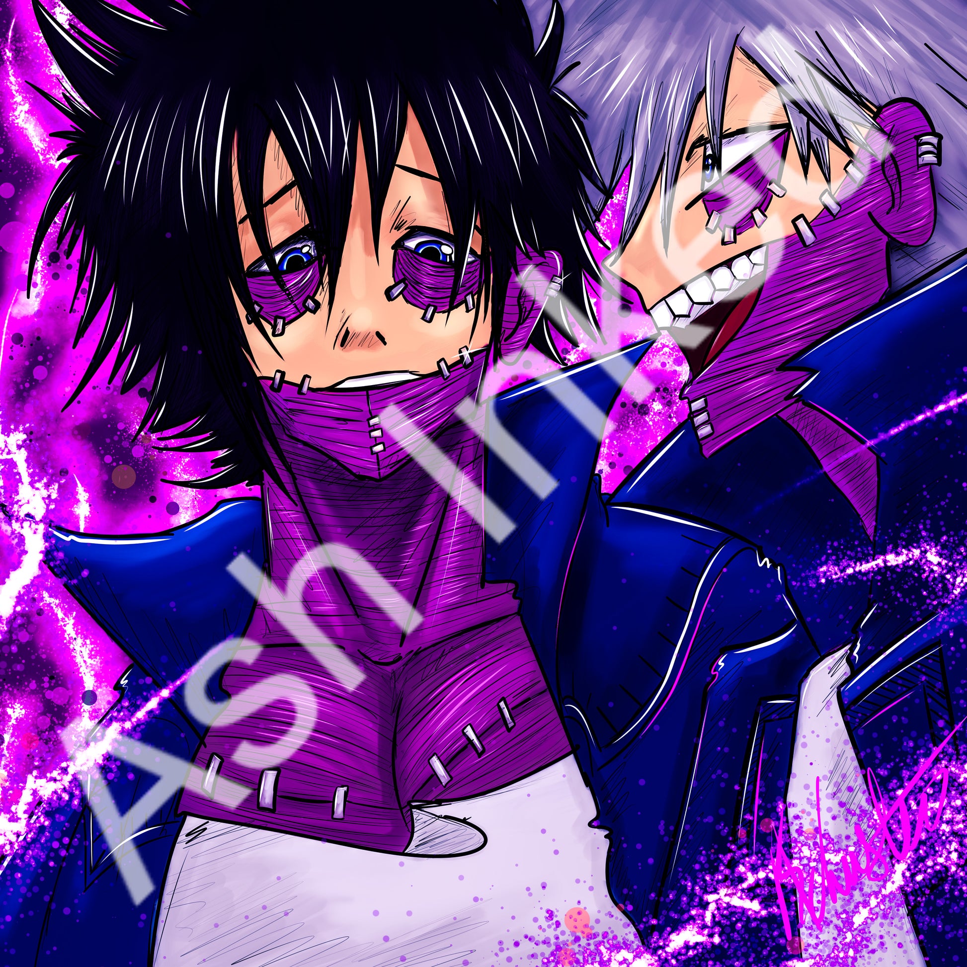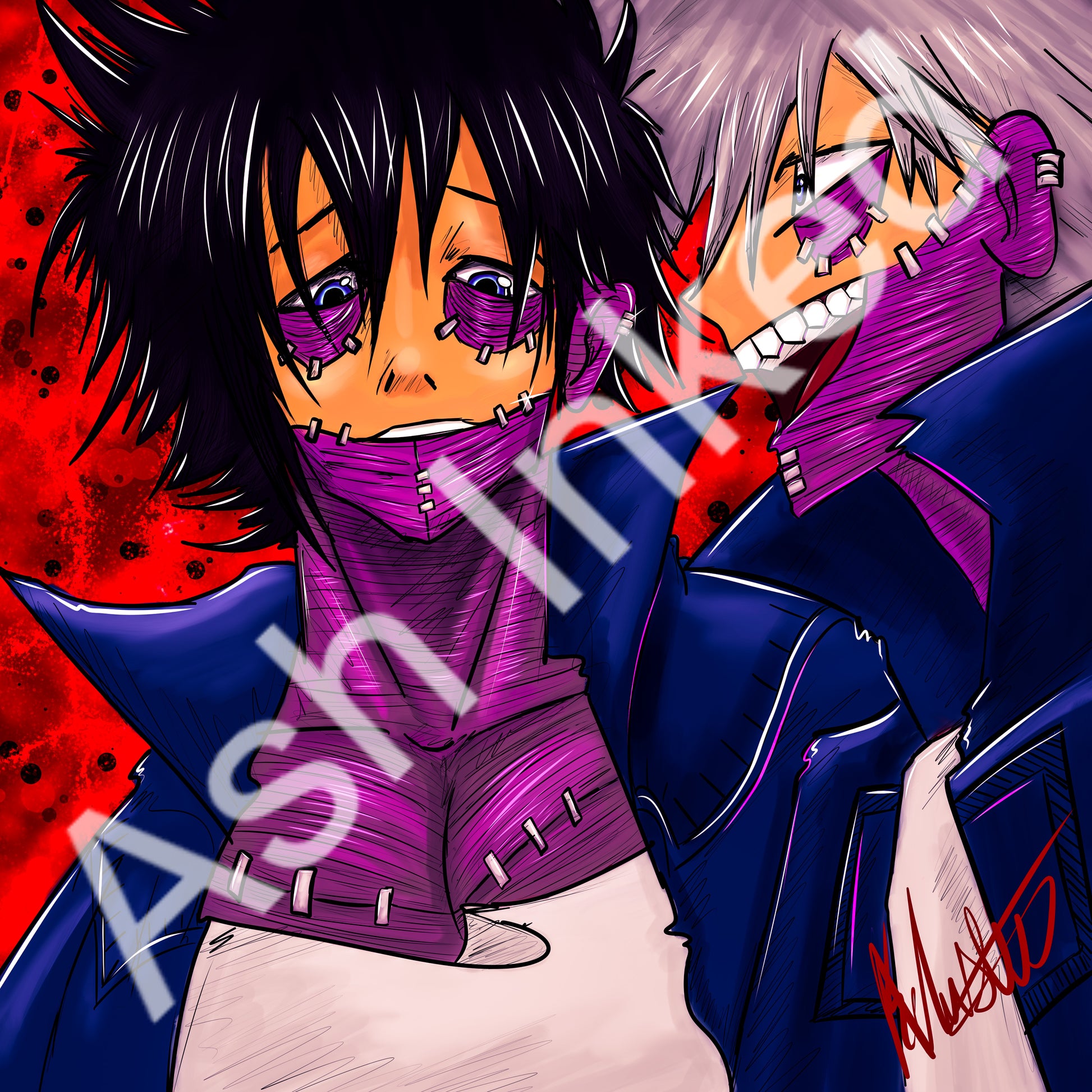 Dabi, the enigmatic and volatile teen. exudes an aura of mystery and danger with his sinister appearance and intense blue flames, harboring a deep-seated vendetta against society and its heroes.