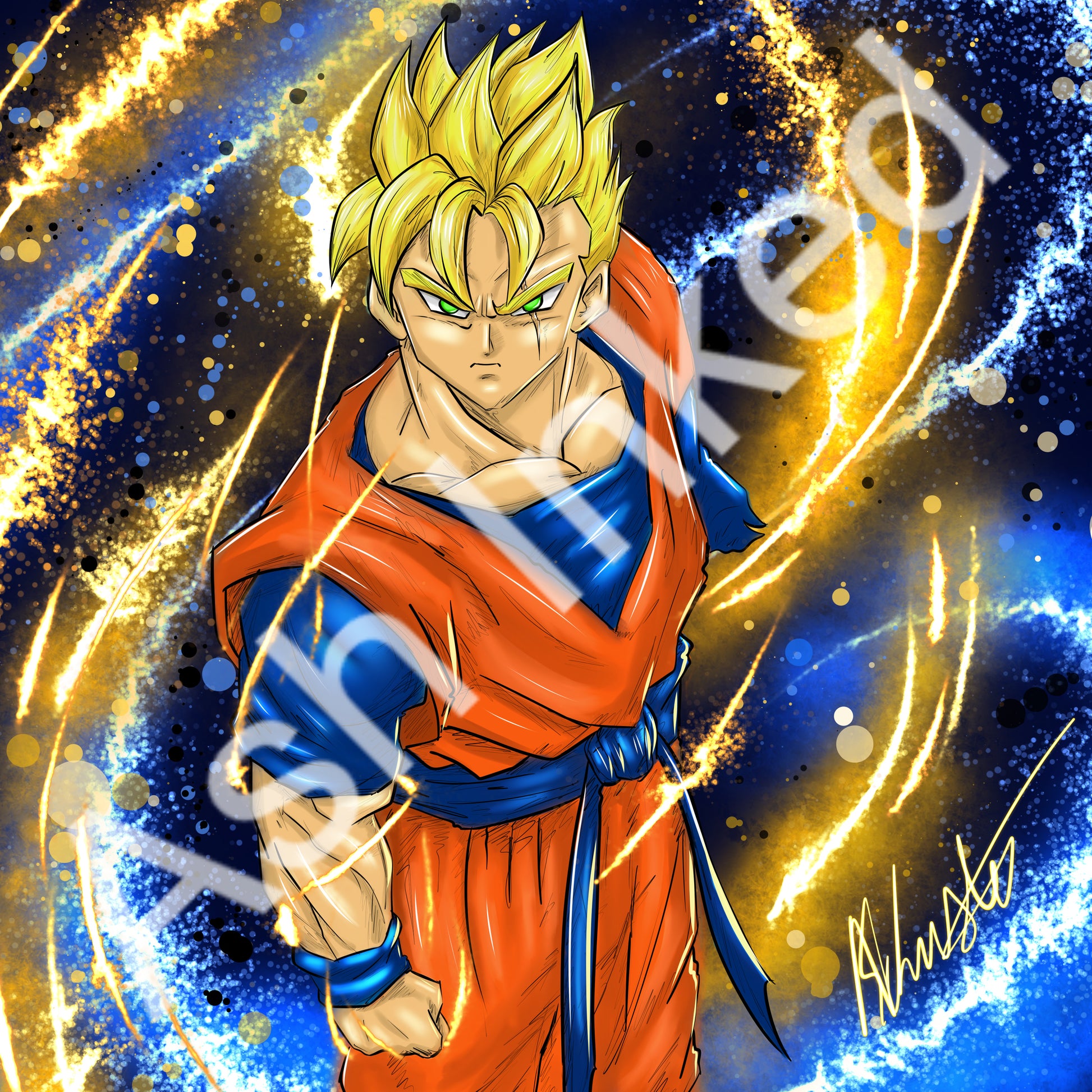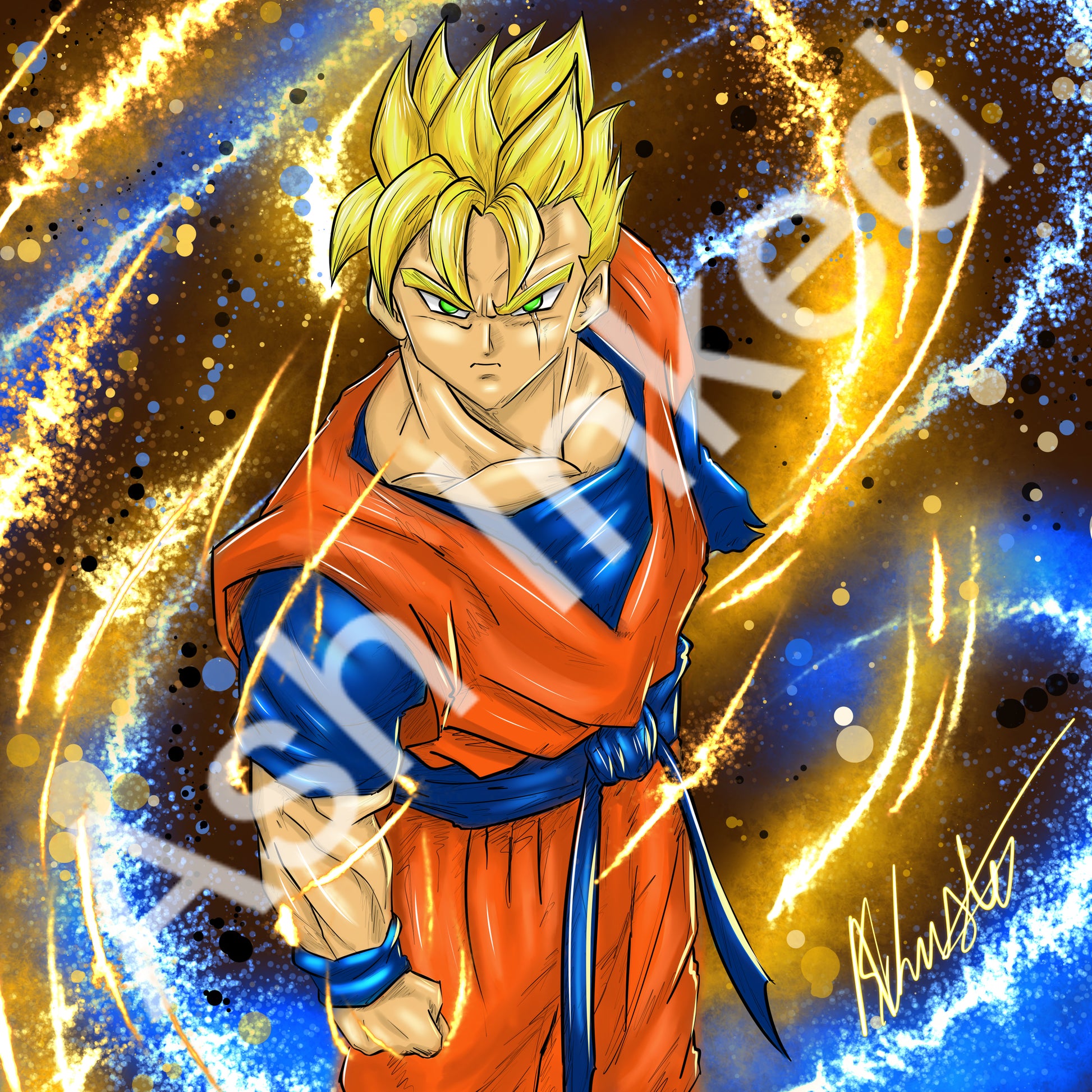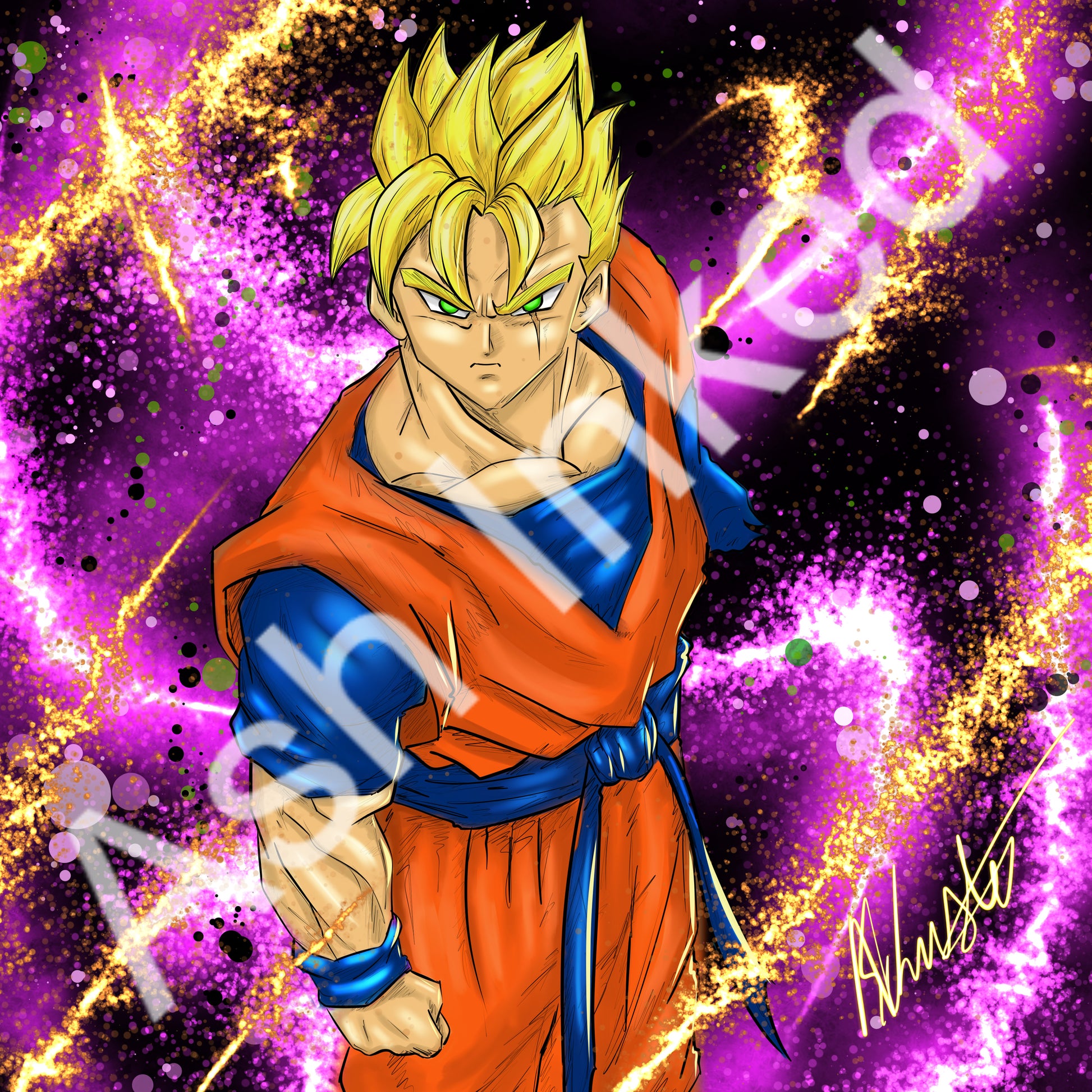 Future Gohan, the courageous warrior from a dystopian future, fights with fierce determination and unwavering resolve against the androids, embodying the last hope for humanity's survival.