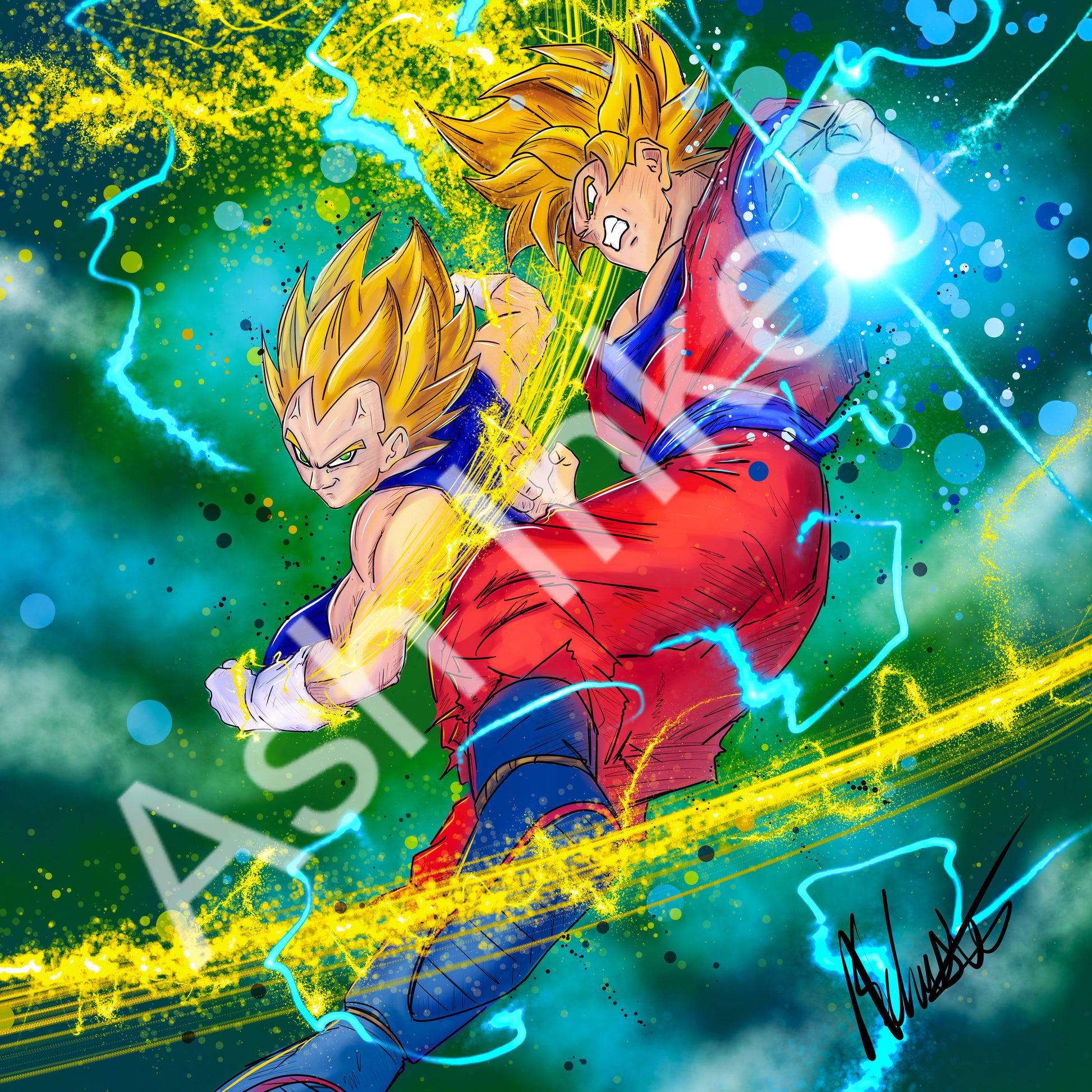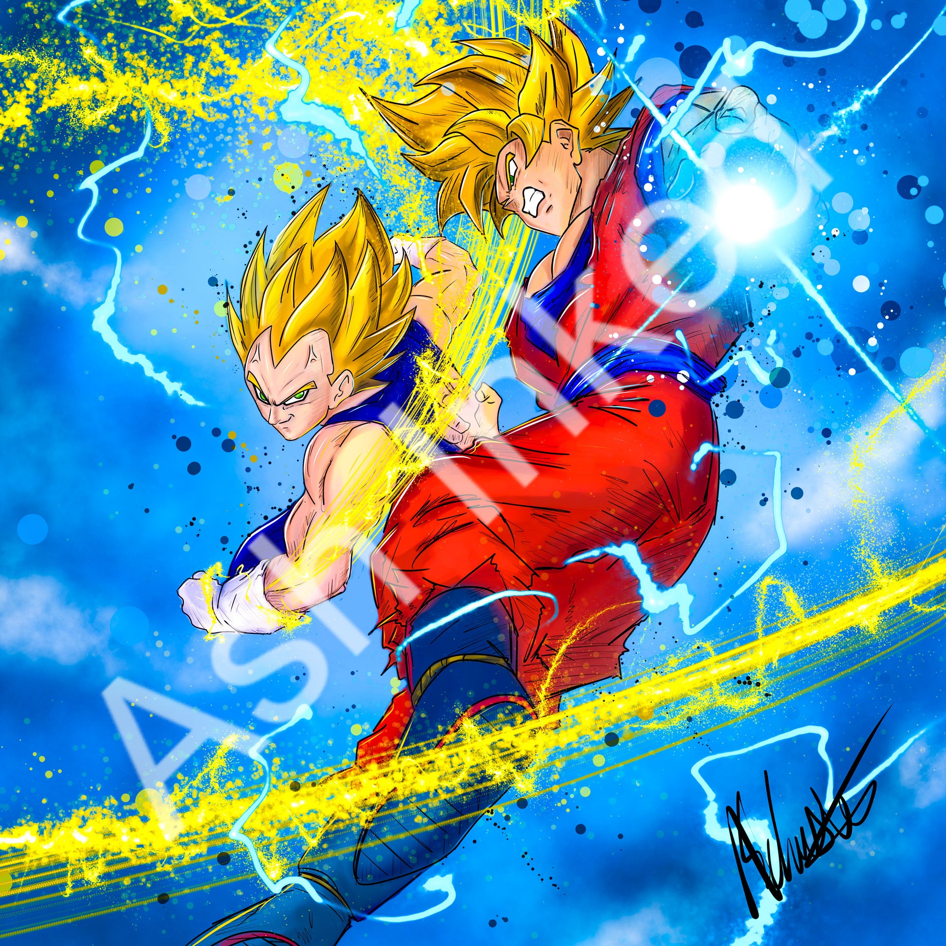 The epic clash between Goku and Vegeta erupts with explosive energy and fierce determination as they push their limits in a battle that transcends mere physical strength, showcasing their unyielding rivalry and mutual respect