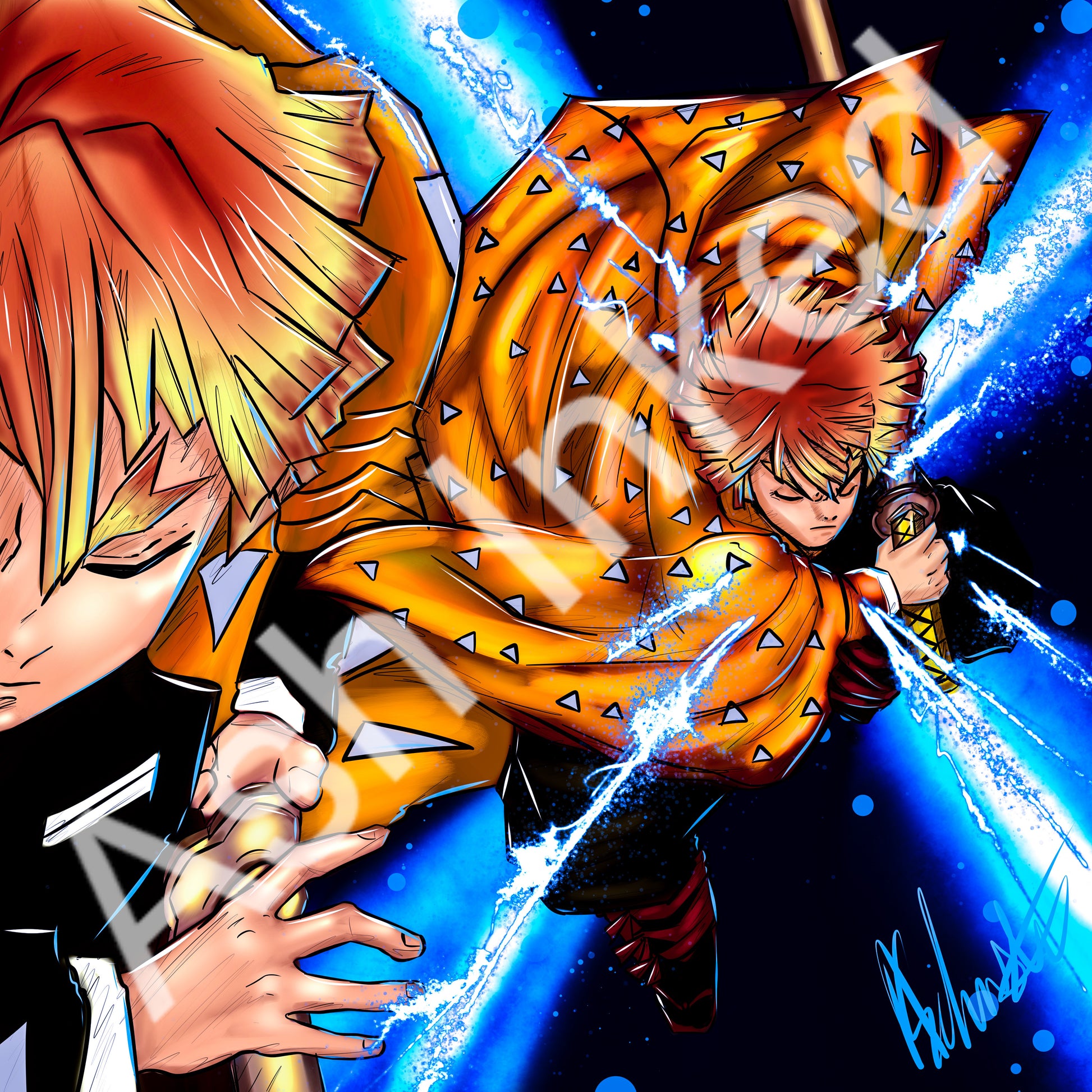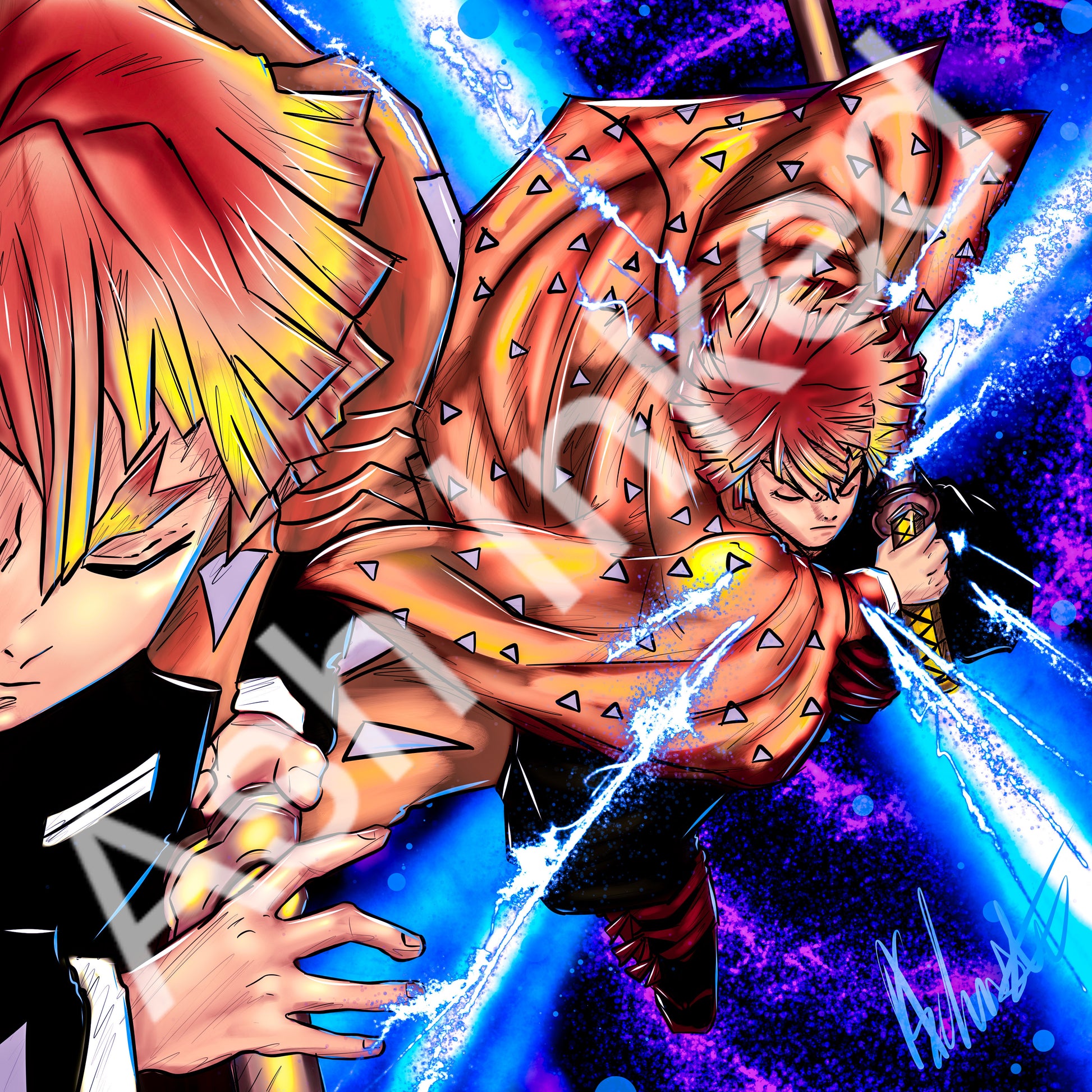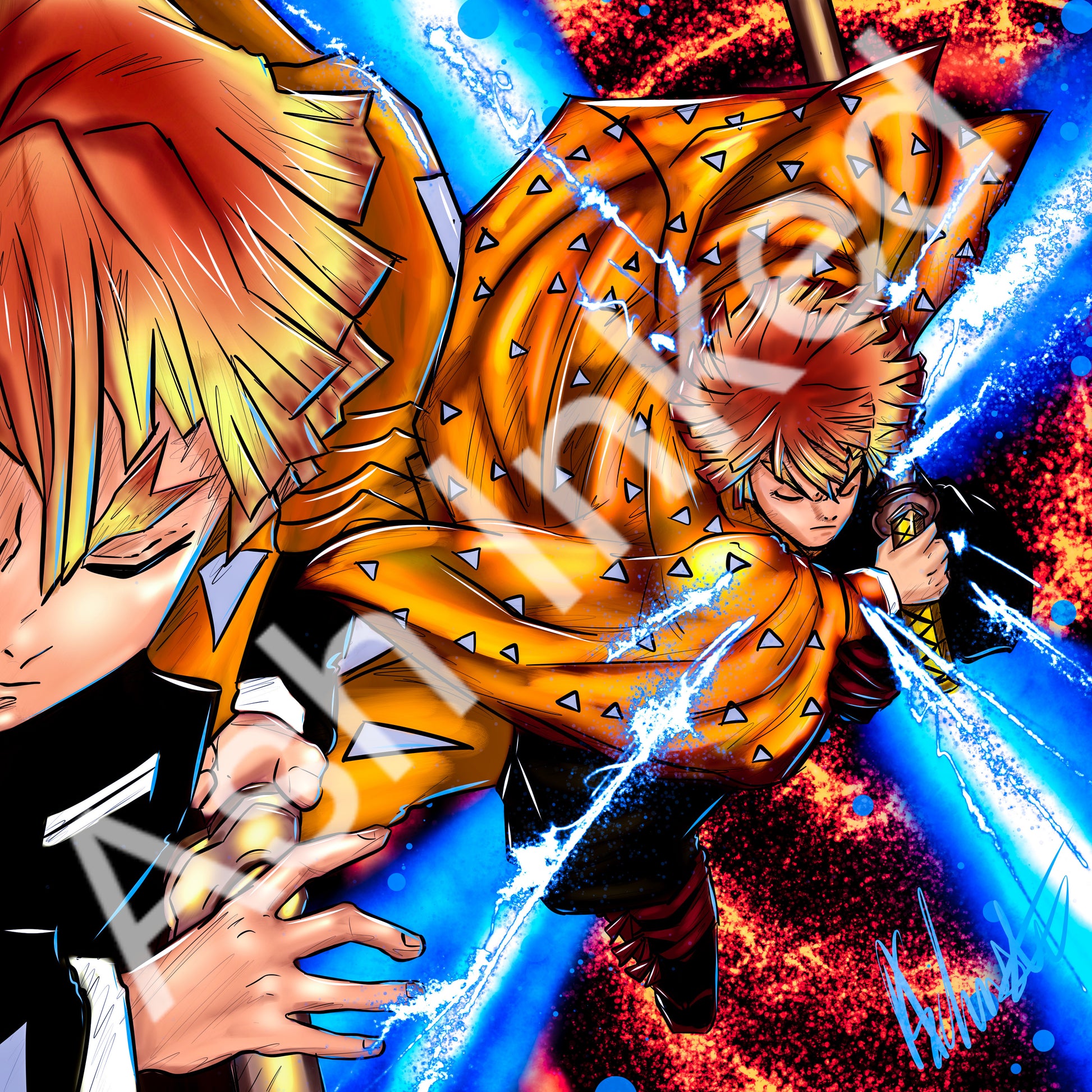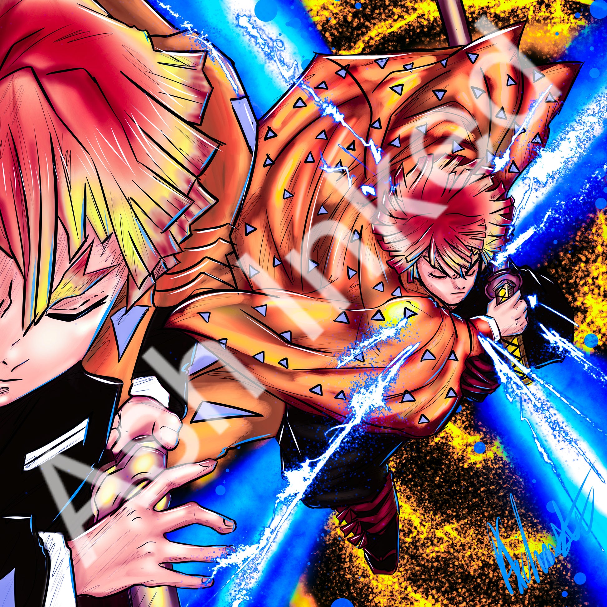 Inosuke, the ferocious warrior of Demon Slayer, brandishes his dual Nichirin Blades with untamed vigor, his boar mask and wild mane exuding raw intensity.